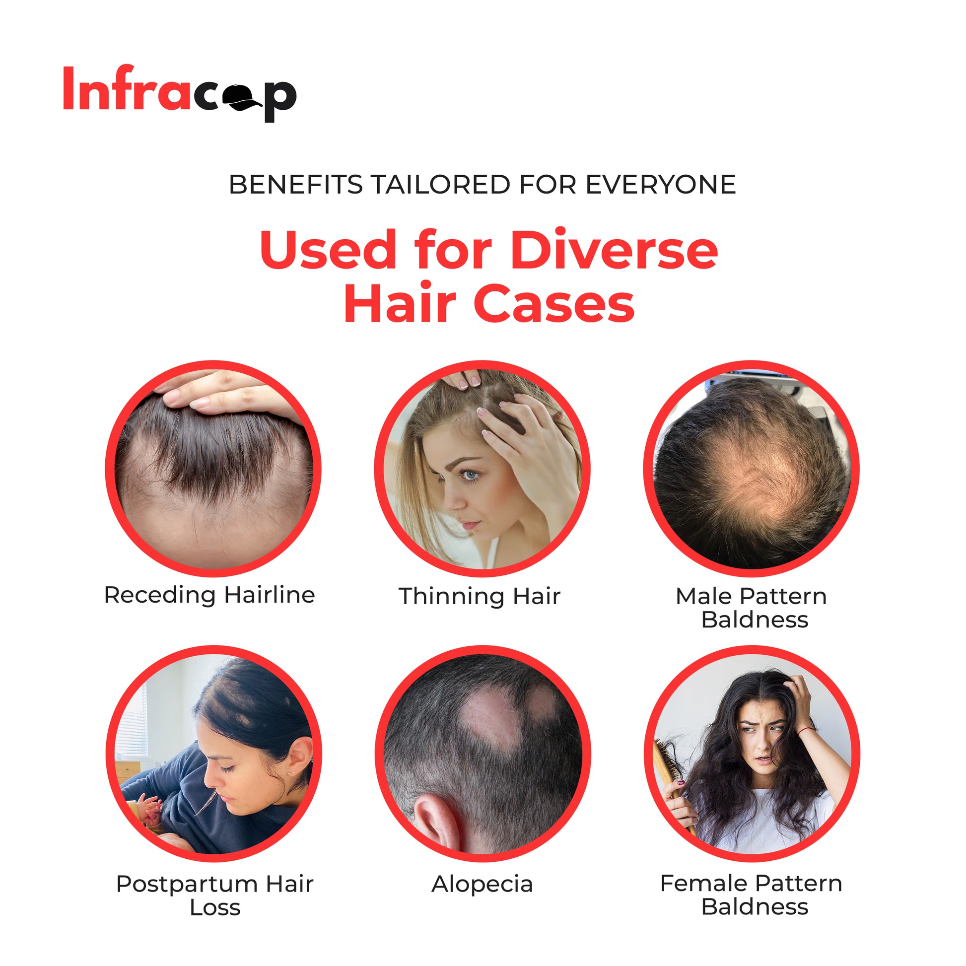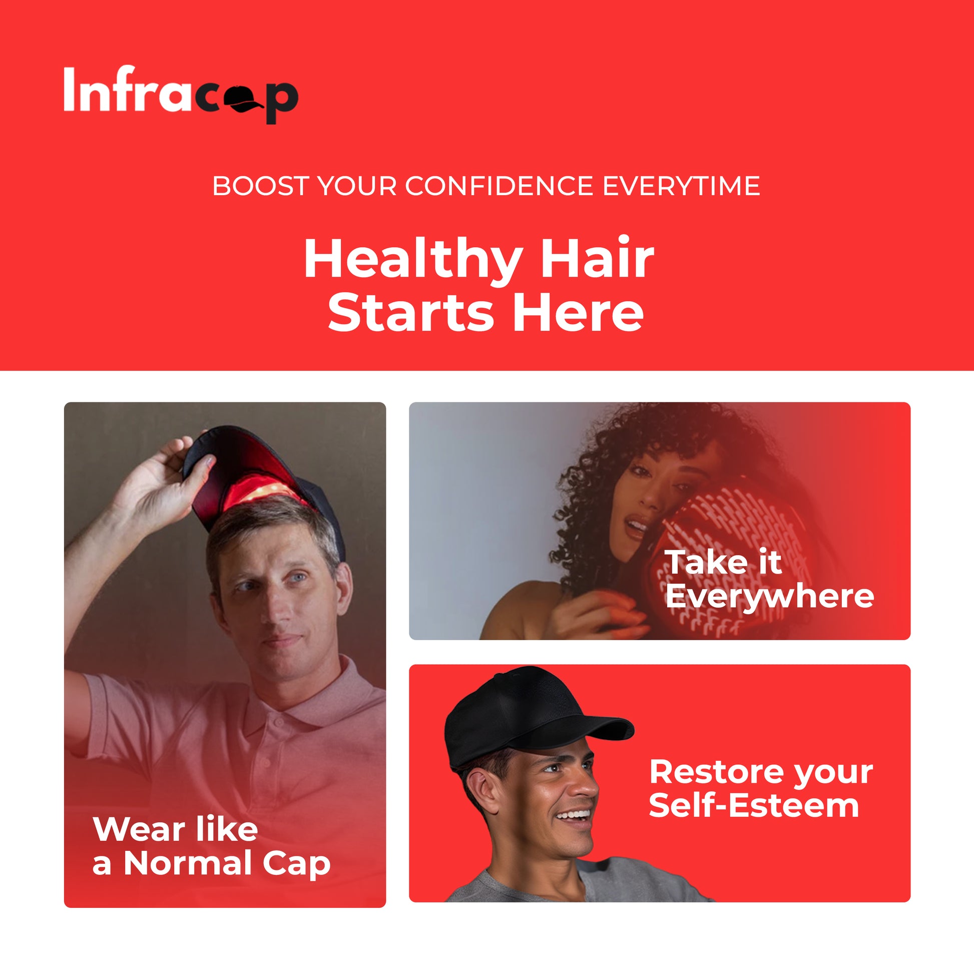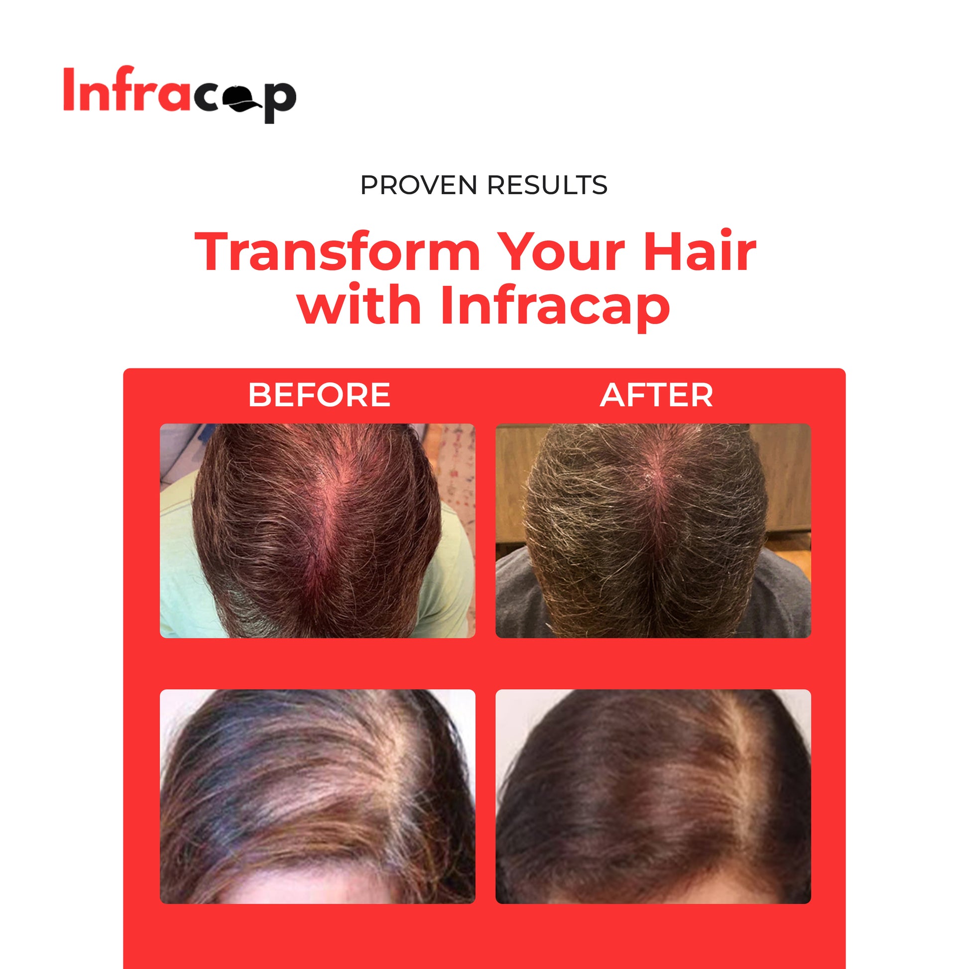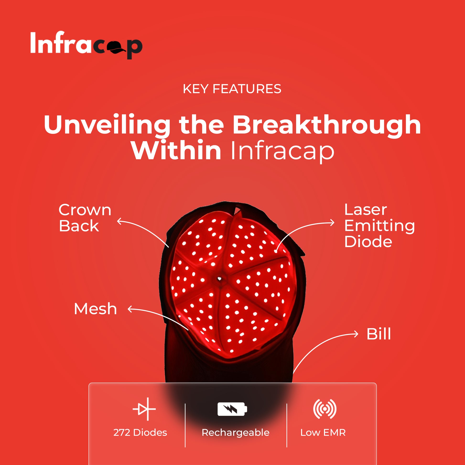 The Infracap uses advanced infrared technology to stimulate hair follicles, increase blood flow to the scalp, and promote natural hair growth. In comparison to other red light therapy caps which do not use infrared technology.