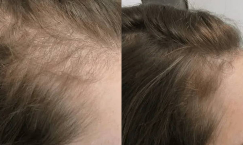 You may notice slight thickening in areas where hair was thinning. Hair looks healthier, with more shine and strength.
